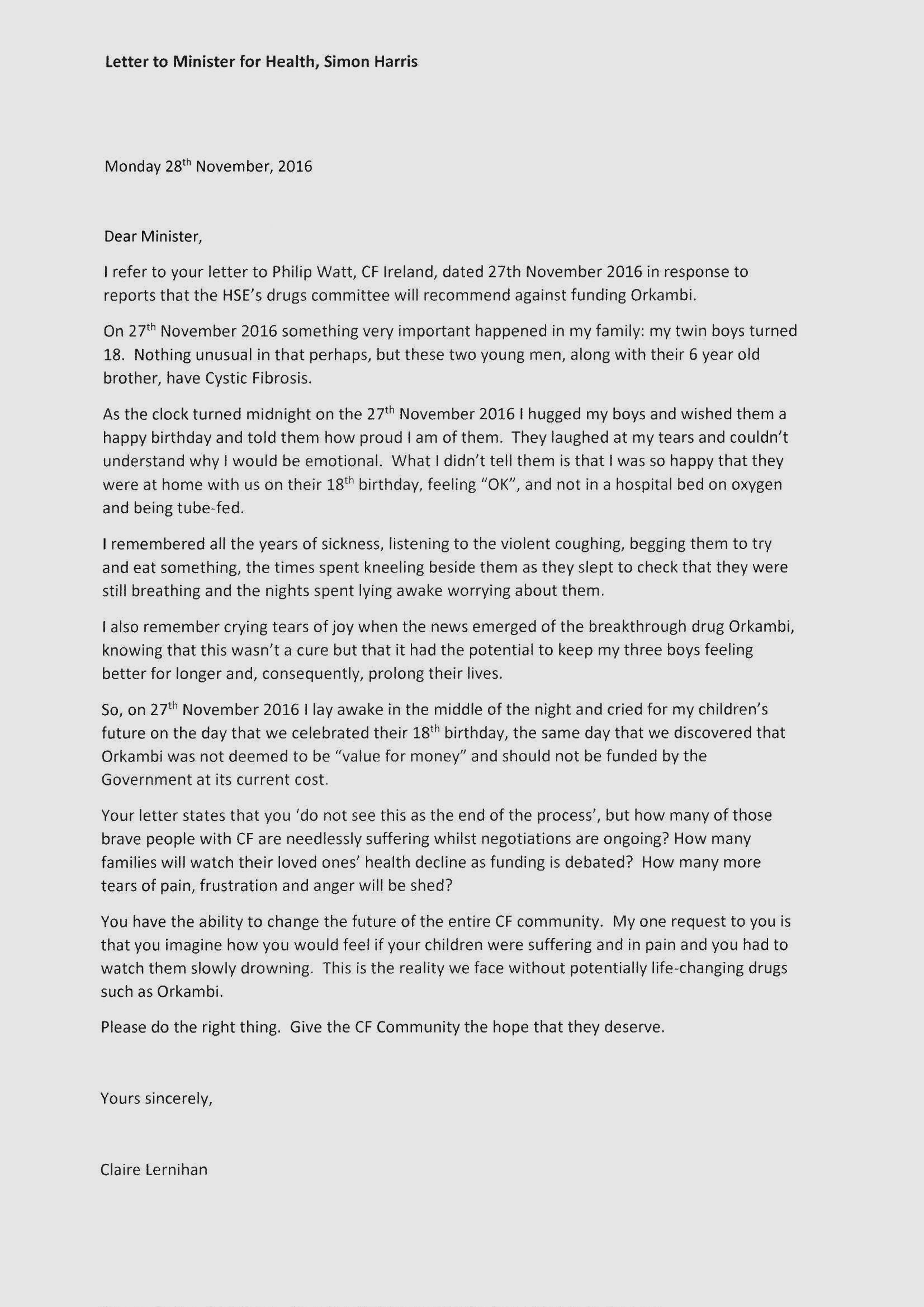 Claire Lernihan On X Pls Read My Letter Simonharristd I Cried For My Children S Future On The Day That We Celebrated Their 18th Birthday Cf Ireland Orkambi Https T Co Fyslkzi6sa X