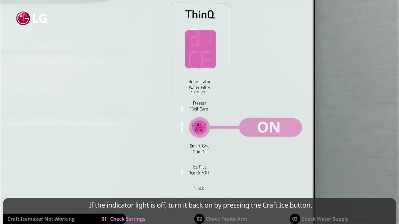 Check if the Craft Ice Maker LED is turned on at the control panel. The ice is frozen in the Craft Ice cube maker and wont release and now the bin just fill Learn about LG - 235 Cu. The Appliance Repair Experts.